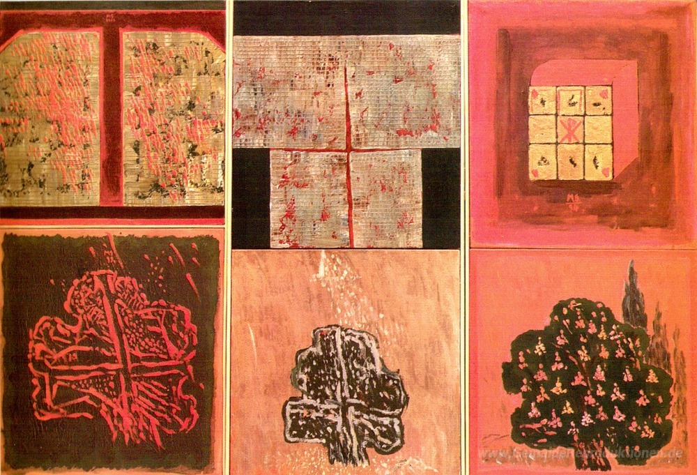 Wir bieten Ihnen eine handgefertigte Reproduktion auf Leinwand des berühmten Kunstwerks 'Polyptic' von Marin Gherasim, aus dem Reproduktionsmuseum.