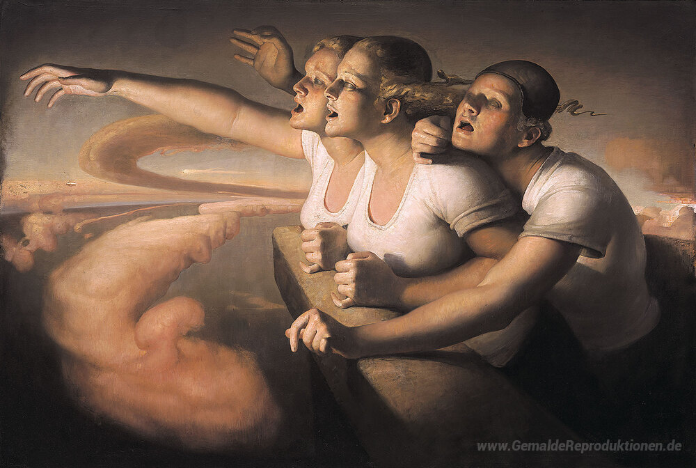 Wir bieten Ihnen eine handgefertigte Reproduktion auf Leinwand des berühmten Kunstwerks 'Rückkehr der Sonne' von Odd Nerdrum, aus dem Reproduktionsmuseum.