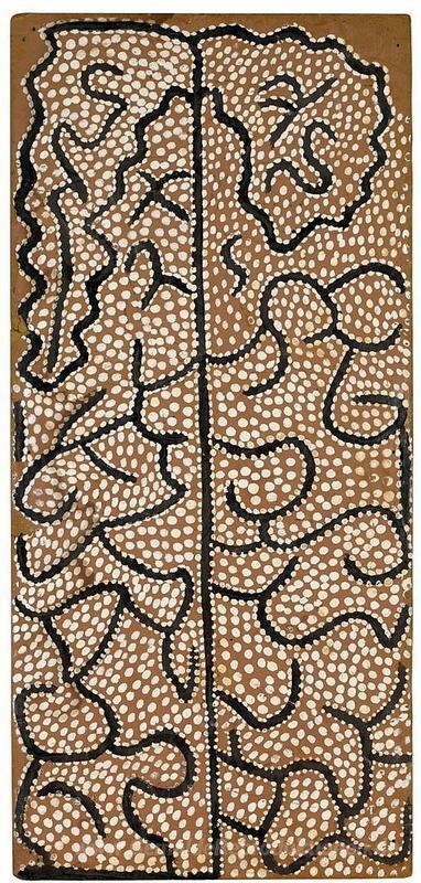 Willkommen in der faszinierenden Welt der Ölgemälde, wo Farben und Formen eine magische Verbindung eingehen. Unser herausragendes Stück, Reisen Wasser Träumen mit Blitz, entstammt der kreativen Vision des renommierten Künstlers Johnny Warangkula Tjupurrula. Mit einem einzigartigen Stil, der die traditionellen aboriginal Einflüsse mit modernen Techniken vereint, lädt dieses Kunstwerk dazu ein, die Energie der Natur und die spirituellen Strömungen Australiens zu erleben.