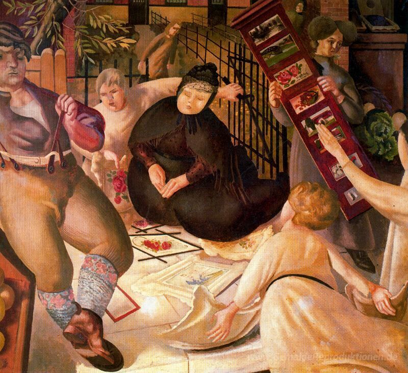 Entdecken Sie die faszinierende Welt der Ölgemälde, in der Künstler wie Stanley Spencer mit ihrem unverwechselbaren Stil und ihrer einzigartigen Technik Geschichten erzählen. Eines seiner Meisterwerke, Sarah Tubb und die himmlischen Besucher, vereint sublime Farben und emotionale Tiefe, die das Auge des Betrachters fesseln und die Seele berühren. Spencer, ein Meister des britischen Expressionismus, erweckt durch seine lebendige Bildsprache und detailreiche Ausführung die dargestellten Szenen zum Leben.