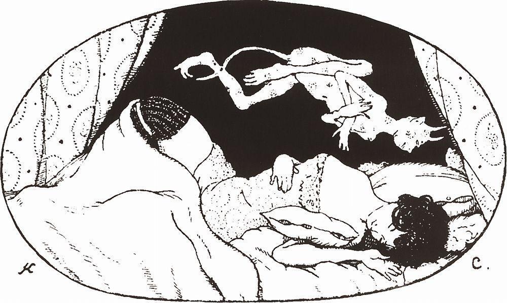 Wir bieten Ihnen eine handgefertigte Reproduktion auf Leinwand des berühmten Kunstwerks 'Schlafende Dame mit den Devils' von Konstantin Somov, aus dem Reproduktionsmuseum.