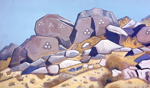 Wir bieten Ihnen eine handgefertigte Reproduktion auf Leinwand des berühmten Kunstwerks 'Shara-Muren' von Nicholas Roerich, aus dem Reproduktionsmuseum.