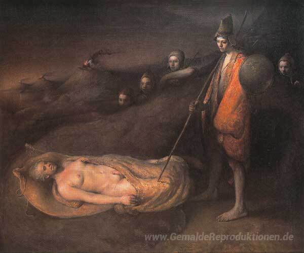 Wir bieten Ihnen eine handgefertigte Reproduktion auf Leinwand des berühmten Kunstwerks 'Sleeping Propheten' von Odd Nerdrum, aus dem Reproduktionsmuseum.