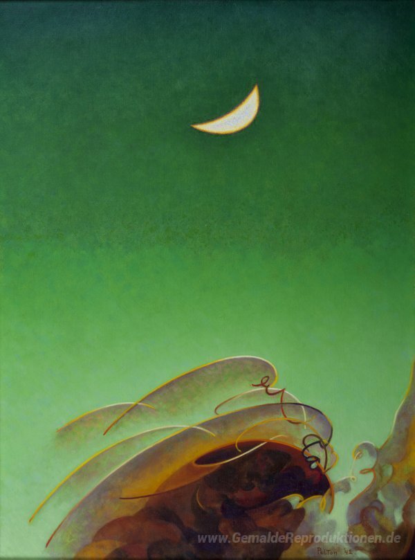 Wir bieten Ihnen eine handgefertigte Reproduktion auf Leinwand des berühmten Kunstwerks 'Spring Moon' von Agnes Lawrence Pelton, aus dem Reproduktionsmuseum.