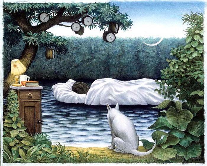 Wir bieten Ihnen eine handgefertigte Reproduktion auf Leinwand des berühmten Kunstwerks 'Traum' von Jacek Yerka, aus dem Reproduktionsmuseum.