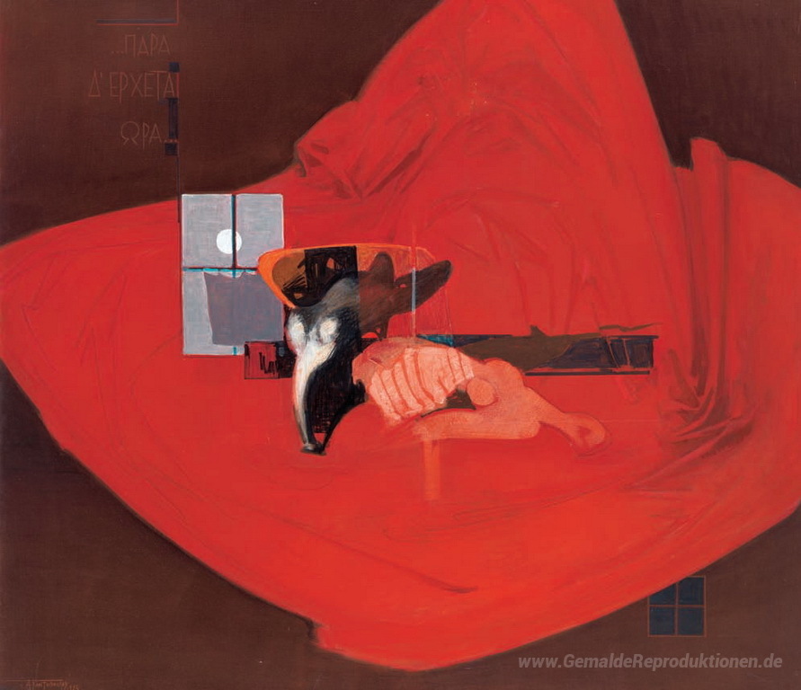Wir bieten Ihnen eine handgefertigte Reproduktion auf Leinwand des berühmten Kunstwerks 'Trotz vierten Stunde kommt' von Alekos Kontopoulos , aus dem Reproduktionsmuseum.