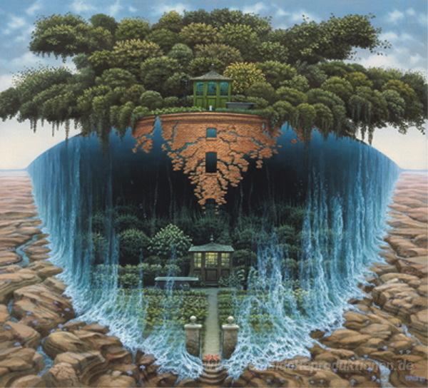 Wir bieten Ihnen eine handgefertigte Reproduktion auf Leinwand des berühmten Kunstwerks 'Unterwasser-Leben' von Jacek Yerka, aus dem Reproduktionsmuseum.