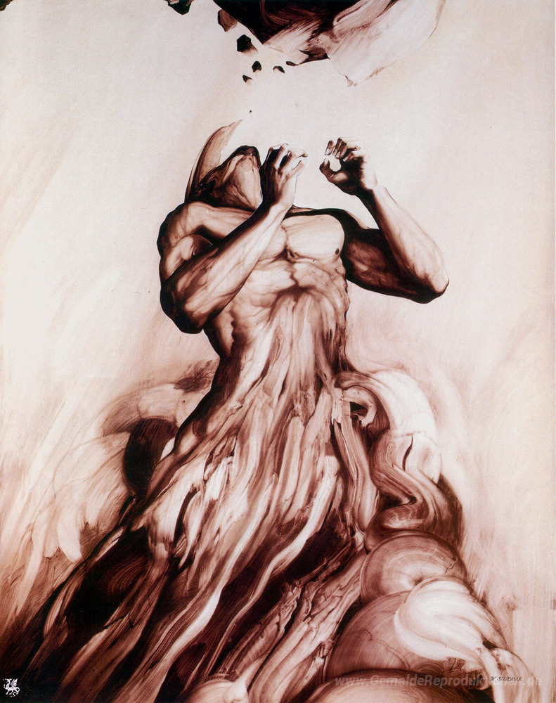 Wir bieten Ihnen eine handgefertigte Reproduktion auf Leinwand des berühmten Kunstwerks 'Vulkan' von Wojciech Siudmak, aus dem Reproduktionsmuseum.