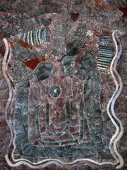 Willkommen in der faszinierenden Welt der Ölgemälde, wo Kunst und Emotion in harmonischer Einheit verschmelzen. Unser ausgestelltes Werk, Wasser-Träumen von Johnny Warangkula Tjupurrula, repräsentiert nicht nur einen einzigartigen künstlerischen Stil, sondern auch die tiefen Wurzeln der indigenen australischen Kultur. Tjupurrulas meisterhafte Technik, in der er lebendige Farben und dynamische Formen kombiniert, lässt die Betrachter in eine tranceartige Stimmung eintauchen.