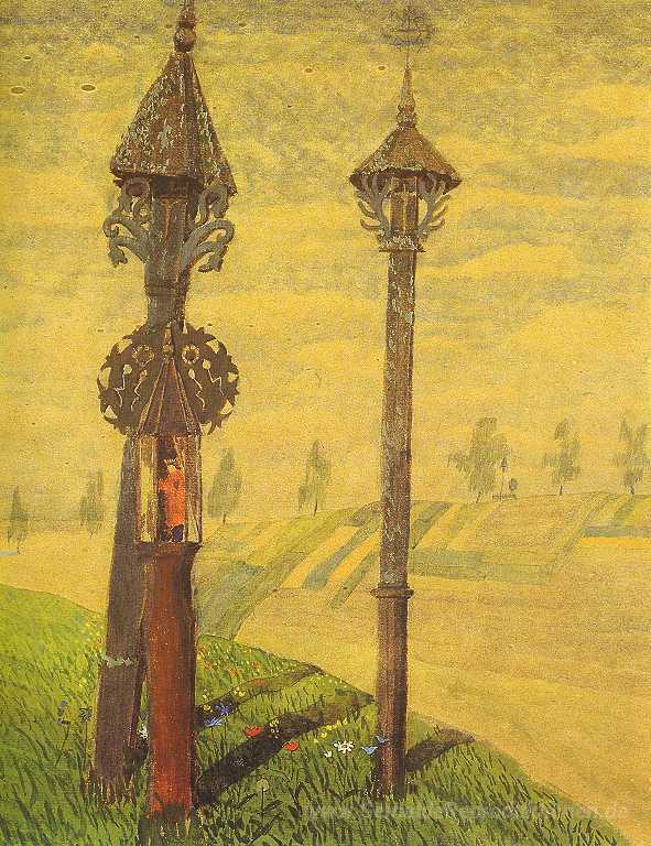 Wir bieten Ihnen eine handgefertigte Reproduktion auf Leinwand des berühmten Kunstwerks 'Wegkreuze von Zemaitija' von Mikalojus Ciurlionis, aus dem Reproduktionsmuseum.