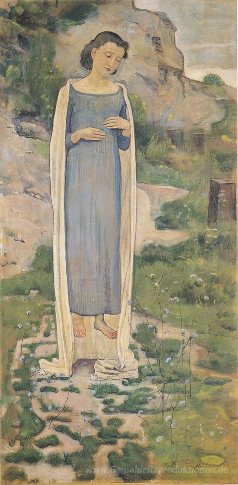 Wir bieten Ihnen eine handgefertigte Reproduktion auf Leinwand des berühmten Kunstwerks 'Welche Blumen saing' von Ferdinand Hodler, aus dem Reproduktionsmuseum.