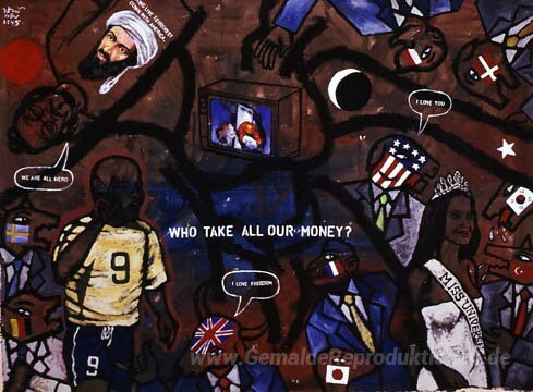 Ölgemälde sind nicht nur dekorative Elemente, sondern besitzen auch die Gabe, die Atmosphäre eines Raumes entscheidend zu verändern. Mit Wer Nehmen Sie all unser Geld? bringen Sie einen Hauch von Tiefe und Charakter in Ihr Zuhause. Die kraftvolle Bildsprache und die durchdachte Komposition fördern eine inspirierende und anregende Umgebung. Entdecken Sie, wie Kunst Ihre Räume bereichern kann und lassen Sie sich von der Magie der Ölgemälde verzaubern!