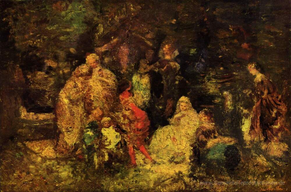 Wir bieten Ihnen eine handgefertigte Reproduktion auf Leinwand des berühmten Kunstwerks 'Wie du es magst' von Adolphe Joseph Thomas Monticelli, aus dem Reproduktionsmuseum.