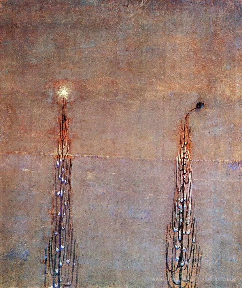 Wir bieten Ihnen eine handgefertigte Reproduktion auf Leinwand des berühmten Kunstwerks 'Winter (IV)' von Mikalojus Ciurlionis, aus dem Reproduktionsmuseum.