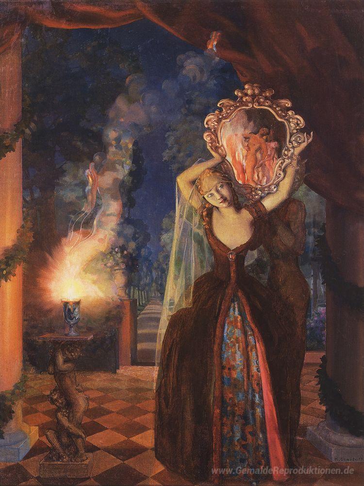 Wir bieten Ihnen eine handgefertigte Reproduktion auf Leinwand des berühmten Kunstwerks 'Zauberin' von Konstantin Somov, aus dem Reproduktionsmuseum.