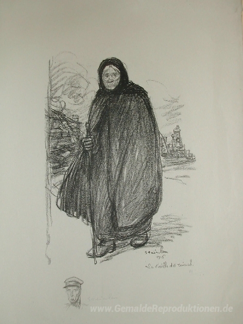 Wir bieten Ihnen eine handgefertigte Reproduktion auf Leinwand des berühmten Kunstwerks 'Alte Frau' von Theophile Steinlen, aus dem Reproduktionsmuseum.
