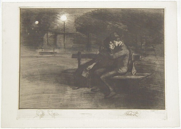 Wir bieten Ihnen eine handgefertigte Reproduktion auf Leinwand des berühmten Kunstwerks 'Amoureux Sur Un Banc' von Theophile Steinlen, aus dem Reproduktionsmuseum.