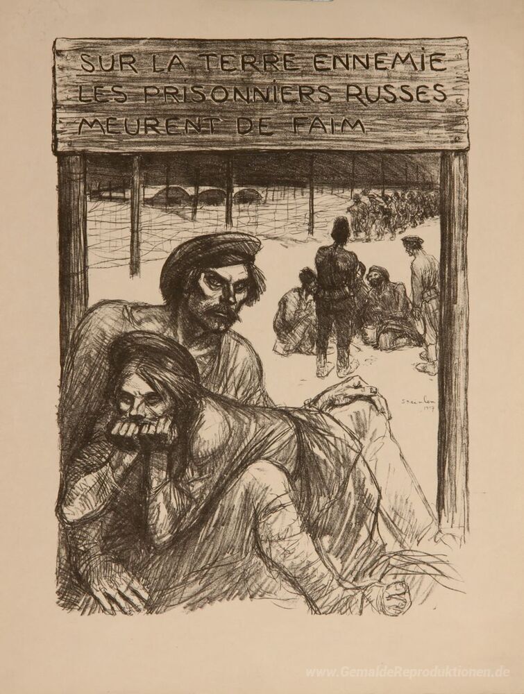 Wir bieten Ihnen eine handgefertigte Reproduktion auf Leinwand des berühmten Kunstwerks 'Auf der feindliche Land - russische Gefangene hungert Hunger' von Theophile Steinlen, aus dem Reproduktionsmuseum.
