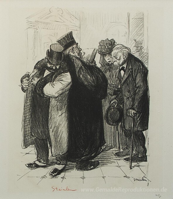 Wir bieten Ihnen eine handgefertigte Reproduktion auf Leinwand des berühmten Kunstwerks 'Auf Detrousse Au Coin Des Lois' von Theophile Steinlen, aus dem Reproduktionsmuseum.