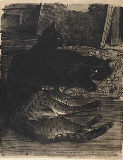 Wir bieten Ihnen eine handgefertigte Reproduktion auf Leinwand des berühmten Kunstwerks 'Cats' von Theophile Steinlen, aus dem Reproduktionsmuseum.