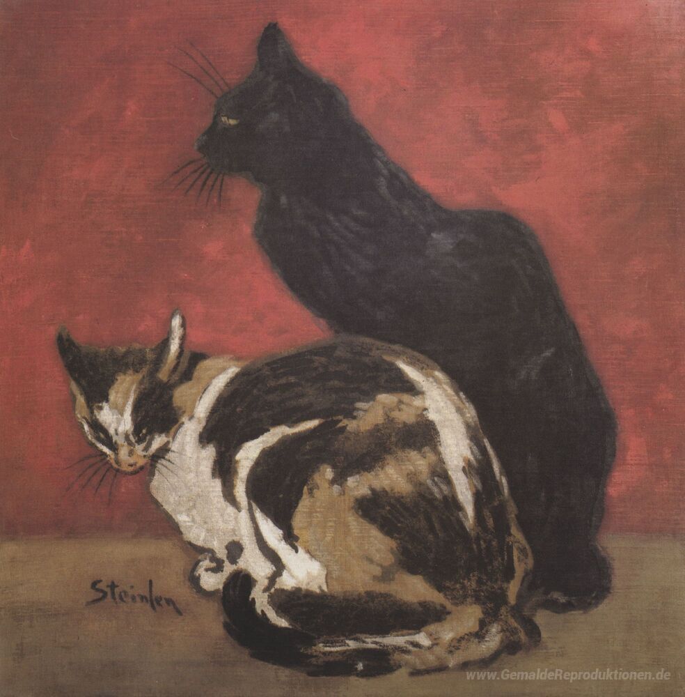 Wir bieten Ihnen eine handgefertigte Reproduktion auf Leinwand des berühmten Kunstwerks 'Cats' von Theophile Steinlen, aus dem Reproduktionsmuseum.
