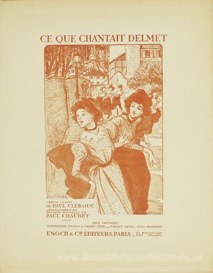 Wir bieten Ihnen eine handgefertigte Reproduktion auf Leinwand des berühmten Kunstwerks 'Ce Que Chantait Delmet' von Theophile Steinlen, aus dem Reproduktionsmuseum.