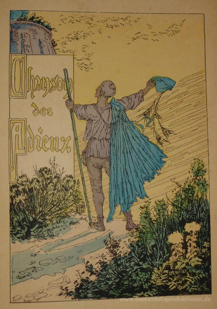 Wir bieten Ihnen eine handgefertigte Reproduktion auf Leinwand des berühmten Kunstwerks 'Chanson des Adieux' von Theophile Steinlen, aus dem Reproduktionsmuseum.