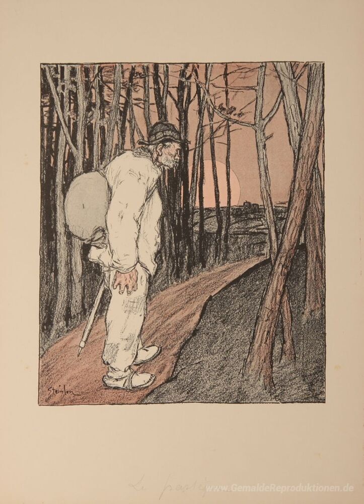 Wir bieten Ihnen eine handgefertigte Reproduktion auf Leinwand des berühmten Kunstwerks 'Chemineau' von Theophile Steinlen, aus dem Reproduktionsmuseum.