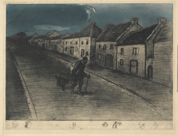 Wir bieten Ihnen eine handgefertigte Reproduktion auf Leinwand des berühmten Kunstwerks 'Chemineau Traversant Un Dorf Endormi -1902- -C 69- -2nd Rechnung' von Theophile Steinlen, aus dem Reproduktionsmuseum.