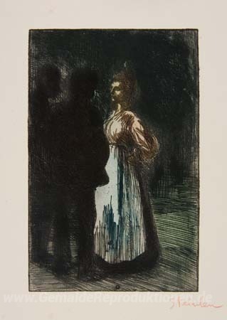 Die künstlerischen Techniken, die Steinlen einsetzt, reichen von der experimentellen Verwendung von Texturen bis hin zu einer meisterhaften Verarbeitung von Licht und Schatten. Dieses Gemälde ist nicht nur ein ästhetischer Genuss, sondern beeinflusst auch die Atmosphäre Ihres Raumes positiv. Lassen Sie sich von der zeitlosen Eleganz und der emotionalen Tiefe von Colloque Nocturne verzaubern und verwandeln Sie Ihr Zuhause in einen Ort der Inspiration und des Stils.