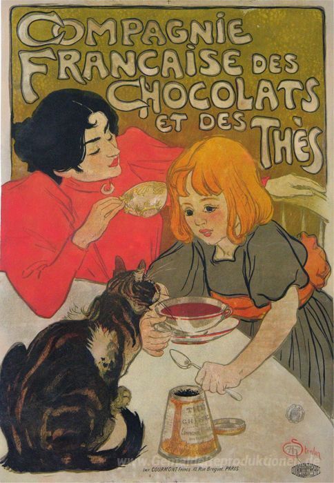 Wir bieten Ihnen eine handgefertigte Reproduktion auf Leinwand des berühmten Kunstwerks 'Compagnie Francaise DES Chocolats et des Thes' von Theophile Steinlen, aus dem Reproduktionsmuseum.