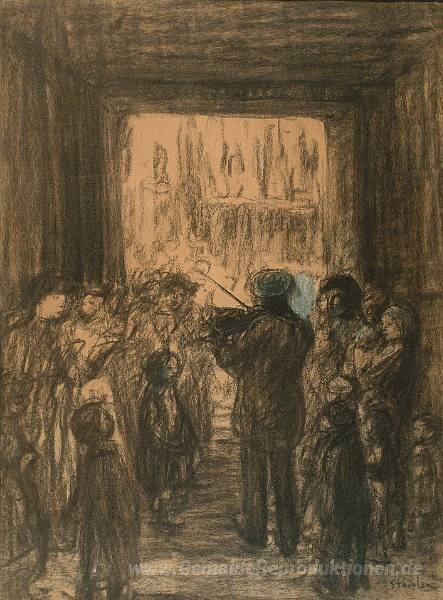 Wir bieten Ihnen eine handgefertigte Reproduktion auf Leinwand des berühmten Kunstwerks 'Crowd hören Fiddler' von Theophile Steinlen, aus dem Reproduktionsmuseum.