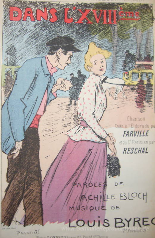 Wir bieten Ihnen eine handgefertigte Reproduktion auf Leinwand des berühmten Kunstwerks 'Dans L'XVIIIme' von Theophile Steinlen, aus dem Reproduktionsmuseum.