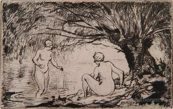 Wir bieten Ihnen eine handgefertigte Reproduktion auf Leinwand des berühmten Kunstwerks 'Deux Baigneuses' von Theophile Steinlen, aus dem Reproduktionsmuseum.