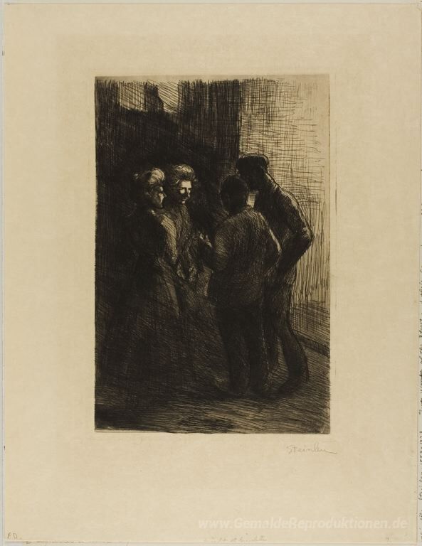 Wir bieten Ihnen eine handgefertigte Reproduktion auf Leinwand des berühmten Kunstwerks 'Deux Gigolettes et deux Gigolos' von Theophile Steinlen, aus dem Reproduktionsmuseum.