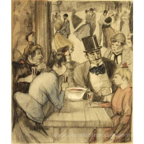 Wir bieten Ihnen eine handgefertigte Reproduktion auf Leinwand des berühmten Kunstwerks 'Die Menschen auf dem Cafe' von Theophile Steinlen, aus dem Reproduktionsmuseum.