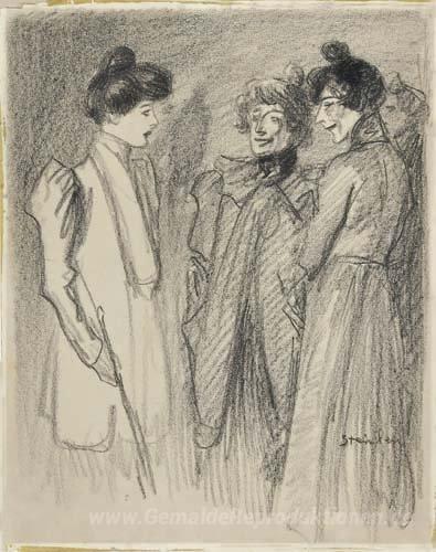 Willkommen in unserer kuratierten Sammlung von Ölgemälden, wo Kunst und Emotion miteinander verschmelzen. Eines der herausragenden Werke ist Drei Frauen des talentierten Künstlers Theophile Steinlen, der für seine ausdrucksvollen Darstellungen des Pariser Lebens im späten 19. Jahrhundert bekannt ist. Steinlens stilistische Meisterschaft und die Verwendung kräftiger Farben verleihen seinen Gemälden eine besondere Tiefe und Intensität.