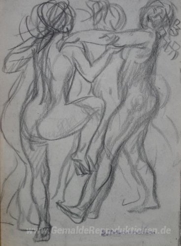 Wir bieten Ihnen eine handgefertigte Reproduktion auf Leinwand des berühmten Kunstwerks 'Drei nackte Frauen tanzen' von Theophile Steinlen, aus dem Reproduktionsmuseum.