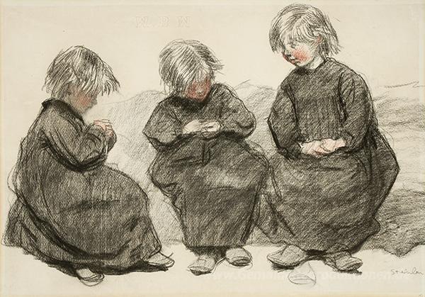 Wir bieten Ihnen eine handgefertigte Reproduktion auf Leinwand des berühmten Kunstwerks 'Drei Sitzende Mädchen' von Theophile Steinlen, aus dem Reproduktionsmuseum.
