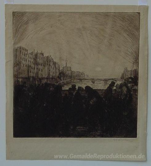 Wir bieten Ihnen eine handgefertigte Reproduktion auf Leinwand des berühmten Kunstwerks 'Effet de soleil couchant beschnitten' von Theophile Steinlen, aus dem Reproduktionsmuseum.