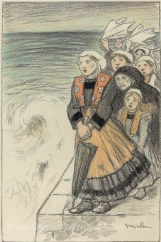 Wir bieten Ihnen eine handgefertigte Reproduktion auf Leinwand des berühmten Kunstwerks 'En partance - Originale Zeichnung' von Theophile Steinlen, aus dem Reproduktionsmuseum.