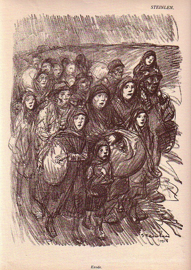 Wir bieten Ihnen eine handgefertigte Reproduktion auf Leinwand des berühmten Kunstwerks 'Exode' von Theophile Steinlen, aus dem Reproduktionsmuseum.