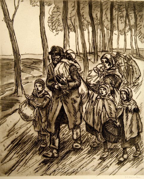 Der expressive Stil und die meisterhaften Techniken Steinlens verleihen dem Gemälde eine besondere Tiefe, die den Betrachter in seinen Bann zieht. Die kräftigen Farben und dynamischen Pinselstriche schaffen eine Atmosphäre, die jeden Raum bereichert. Entdecken Sie, wie Famille En Fuite nicht nur als dekoratives Element dient, sondern auch eine inspirierende Wirkung entfaltet, die Ihre Wohnräume lebendig und einladend gestaltet.
