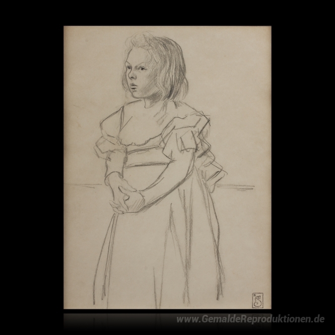 Wir bieten Ihnen eine handgefertigte Reproduktion auf Leinwand des berühmten Kunstwerks 'Fillette a la robe aux rubans' von Theophile Steinlen, aus dem Reproduktionsmuseum.