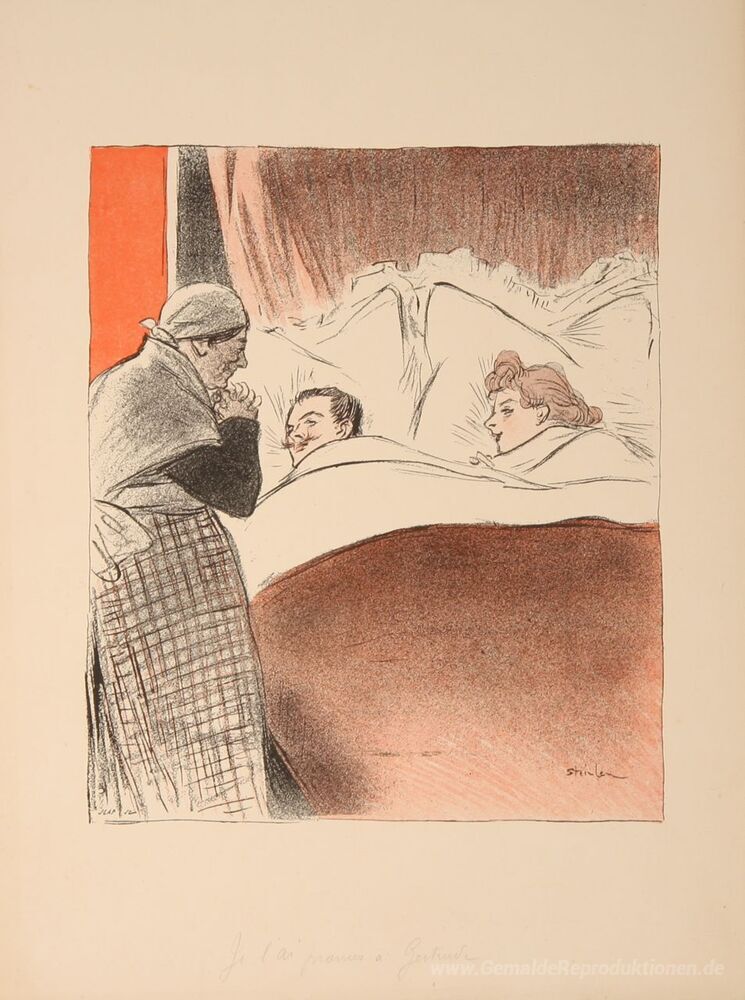 Wir bieten Ihnen eine handgefertigte Reproduktion auf Leinwand des berühmten Kunstwerks 'Je L'Ai Promis a Gertrude' von Theophile Steinlen, aus dem Reproduktionsmuseum.