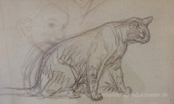 Wir bieten Ihnen eine handgefertigte Reproduktion auf Leinwand des berühmten Kunstwerks 'Katzenskizze' von Theophile Steinlen, aus dem Reproduktionsmuseum.
