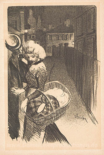 Wir bieten Ihnen eine handgefertigte Reproduktion auf Leinwand des berühmten Kunstwerks 'La Gebühr aux cheveux d'or' von Theophile Steinlen, aus dem Reproduktionsmuseum.