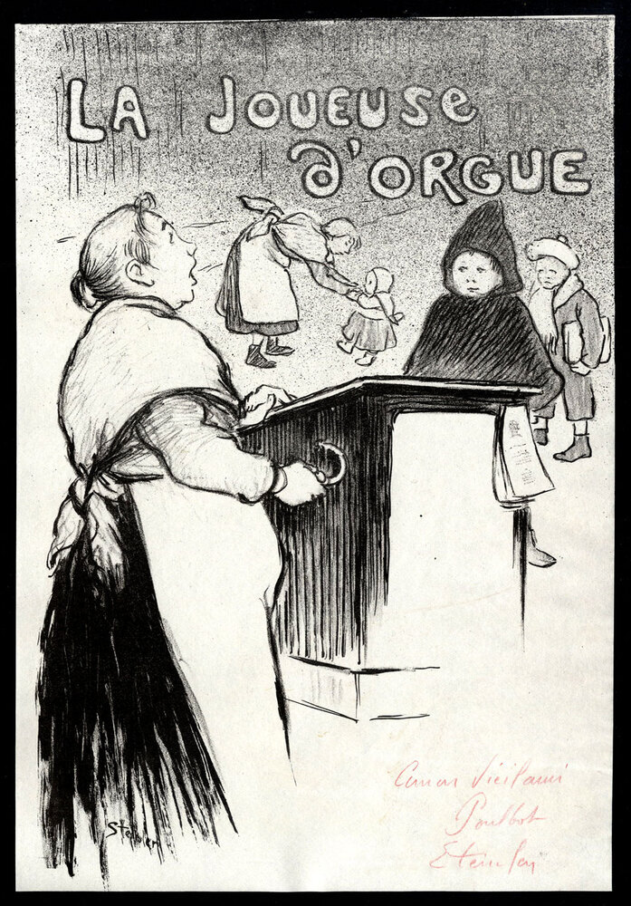 Wir bieten Ihnen eine handgefertigte Reproduktion auf Leinwand des berühmten Kunstwerks 'La Joueuse D'Orgue' von Theophile Steinlen, aus dem Reproduktionsmuseum.