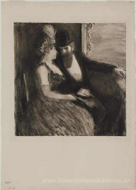 Wir bieten Ihnen eine handgefertigte Reproduktion auf Leinwand des berühmten Kunstwerks 'La Loge' von Theophile Steinlen, aus dem Reproduktionsmuseum.
