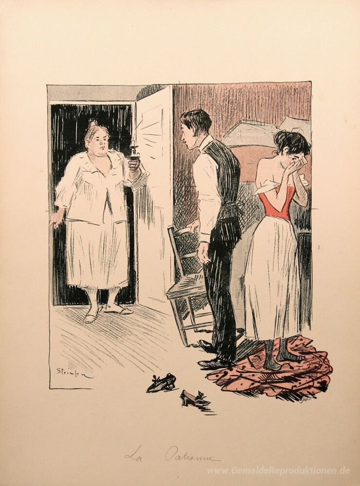 Willkommen in der faszinierenden Welt der Ölgemälde, wo jede Leinwand eine Geschichte erzählt. In unserem Sortiment finden Sie Meisterwerke wie La Patronne von dem renommierten Künstler Theophile Steinlen. Steinlen, bekannt für seine eindrucksvollen Darstellungen des Pariser Lebens, kombiniert gekonnt Realismus mit einem Hauch von Impressionismus, wodurch seine Werke eine unverwechselbare Tiefe und Emotion ausstrahlen.
